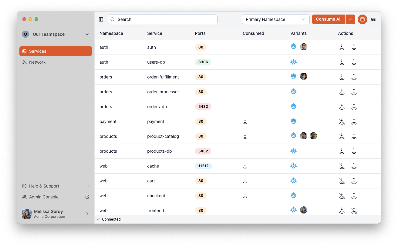 - Fast filtering for Namespace & Services at top of Desktop App window