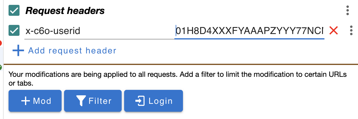 A number of the above providers are browser extensions. For example, configuring ModHeader as follows with your UserID: